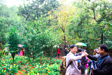天公作美,一場(chǎng)淅淅瀝瀝的秋雨應(yīng)景而落,沒有秋日斜陽(yáng),雨中的山川倒顯得更加通透,清潤(rùn),更加秋意盎然。德瑞克人雨中穿行,留下了一路歡聲笑語(yǔ)。紅葉、山川、飛瀑、古塔,和如織的游人一起組合成了一幅唯美的秋日油畫,伙伴們用微笑定格,和美景和這美好的時(shí)光一起留進(jìn)了影象。