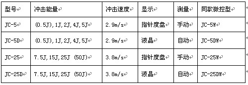 簡支梁沖擊試驗機型號/功能對比:
